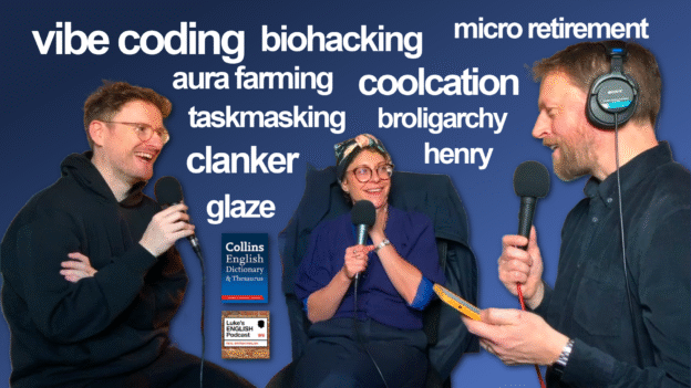 [968] The Collins Dictionary Words of the Year is a list of 10 words which capture the cultural zeitgeist – the spirit of the times that we are living in now. These new words, picked by Collins, reflect issues that people have been talking about over the last 12 months. In this conversation, Amber, Paul & I discuss the impact of AI, the ways social media is affecting people’s behaviour, how people are using technology to control their health, the strange habits of tech leaders, and more. Pick up words to describe new trends, and listen to conversation about big issues in society. Full transcript available.